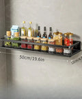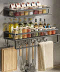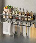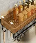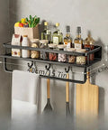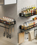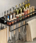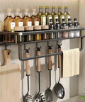 Thanks to the easy-to-mount wall mounting and the handy hook bar, you create more space on your countertop and keep your kitchen organized and uncluttered. Ideal for both compact kitchens and larger spaces, this wall rack provides an elegant and efficient storage solution.