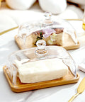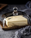 Glass Butter Dish with Wooden Lid – Rectangular Base