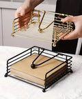 The sleek iron napkin holder is a minimalist and practical addition to any dining table or kitchen countertop. Designed to keep napkins organised and easily accessible, this iron napkin holder provides a stable and stylish way to store paper or cloth napkins for daily use or special occasions.