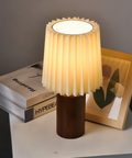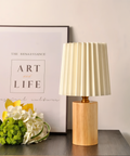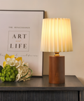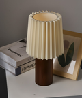 ScandiChic Wooden Table Lamp – Nordic Pleated Fabric Design