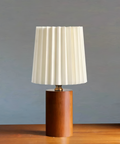 • Material: Wood + pleated fabric shade
