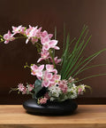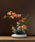 Modern Ceramic Vase with Orchid Faux Flower Figurines