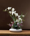 SereneDove™ Modern Ceramic Vase with Orchid Faux Flower Figurines