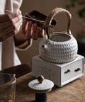 Elevate your tea ritual with this handcrafted matte-white ceramic boiler, designed for gentle, candle-powered heating—no electricity needed. Its dimpled surface enhances both heat distribution and visual character, blending effortlessly into minimalist or Japandi-style spaces. Ideal for quiet mornings, off-grid living, or mindful breaks at your desk.