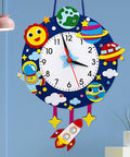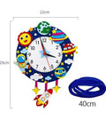 The materials used in the Astronaut and Planets Space-Themed Children's Wall Clock are selected for durability and ease of maintenance. The front surface can be dusted with a dry cloth to maintain the clarity of the space-themed graphics.