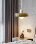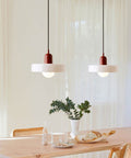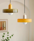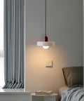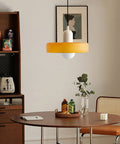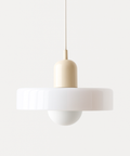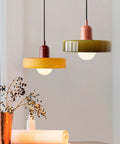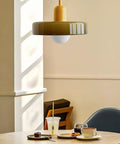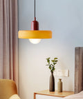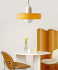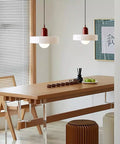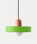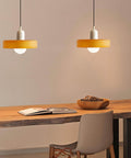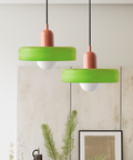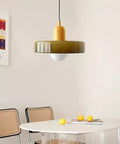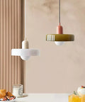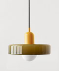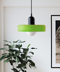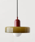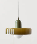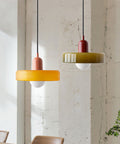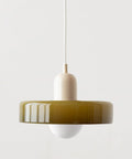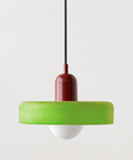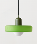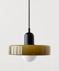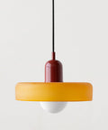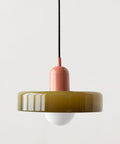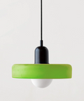 This minimalist glass pendant light combines geometric simplicity with vibrant tones to provide focussed illumination in any interior setting. Designed to hang elegantly from the ceiling, it serves as both a functional light source and a sophisticated decorative element for dining areas, kitchens, or workspaces. The translucent material allows for a soft diffusion of light, creating a balanced atmosphere in the room.